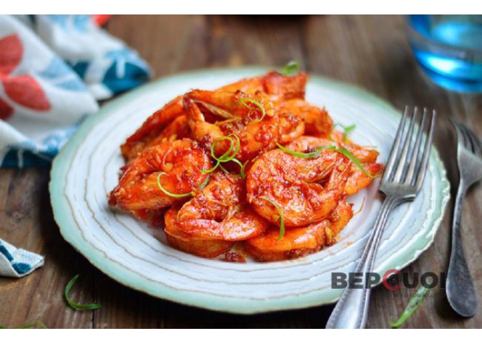 Tôm hấp sốt cà chua ( Tôm sú)